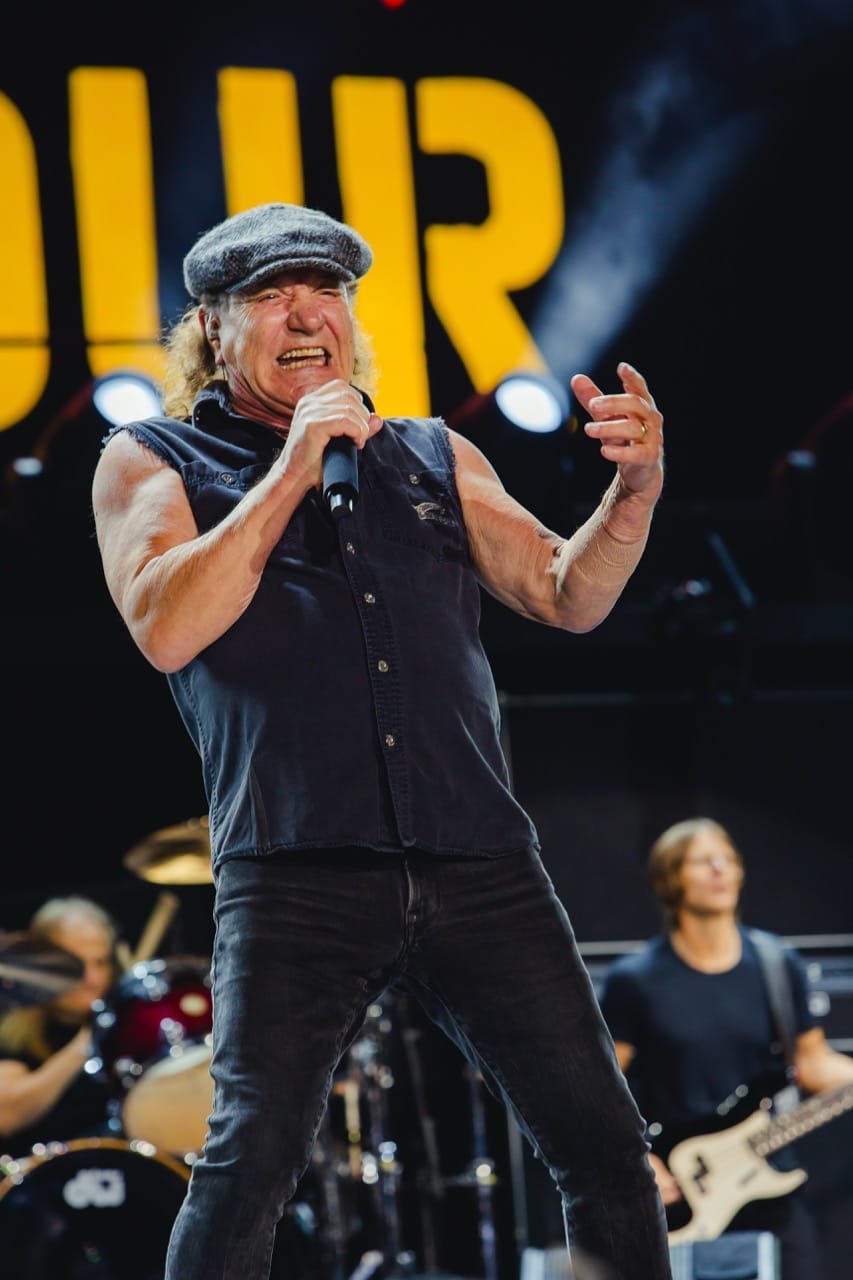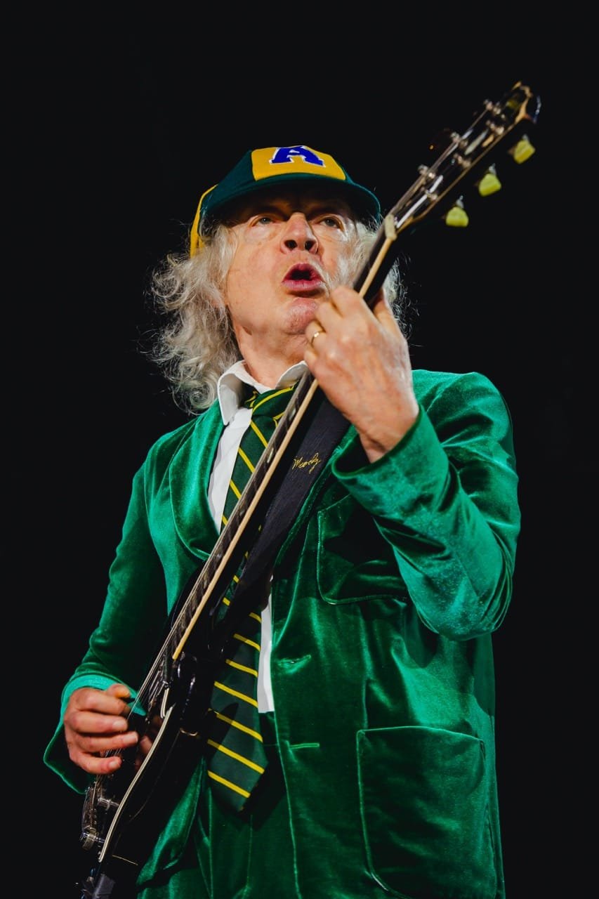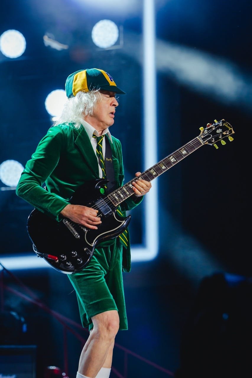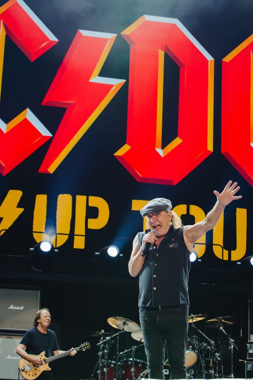 Às 21h já com o estádio lotado, cerca de 70 mil pessoas, foi a vez do AC/DC subir ao palco, com um vídeo de introdução mostrando os lugares da turnê. Começam com “If You Want Blood (You’ve Got It)” comandado pela guitarra energética de Angus, que trouxe ao show os maiores clássicos já no início, com pirotecnias, os pulinhos em cada música e vestindo o paletó bordeaux.