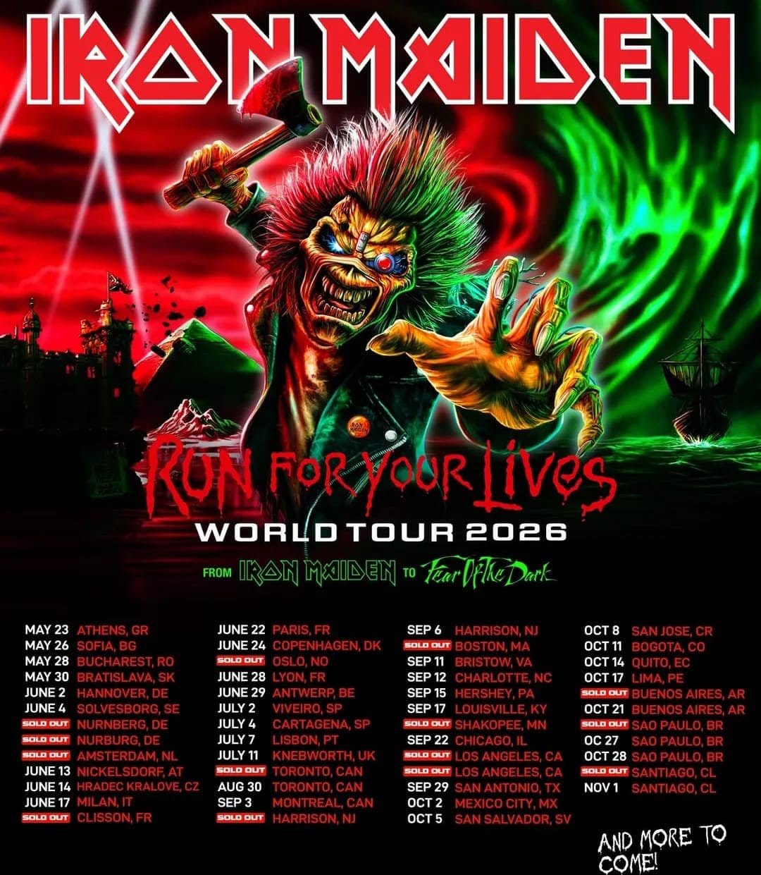 Após esgotar ingressos para o show de 25 de outubro de 2026, em São Paulo, colocados à venda para o público em geral na quinta-feira, 18, o Iron Maiden anunciou duas datas extras para 27 e 28 de outubro de 2026. O local será o mesmo, o Allianz Parque.