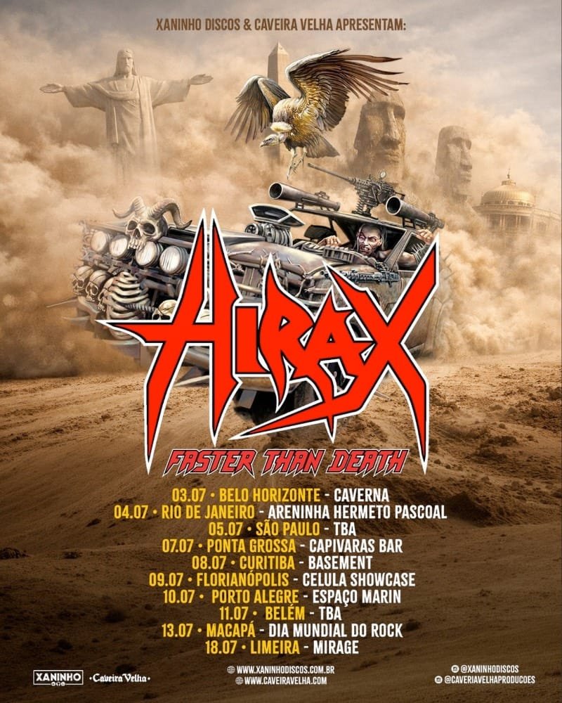 O peso do Hirax na história do metal passa diretamente por seus primeiros lançamentos. Raging Violence, debut de 1985, e Hate, Fear and Power, de 1986, ambos pela Metal Blade, ajudaram a firmar o nome da banda entre os cultuados do thrash e do speed metal dos anos 1980. Em 2025, o grupo chegou ao sexto álbum de estúdio, Faster Than Death, lançado no ano em que celebrou 40 anos de trajetória.